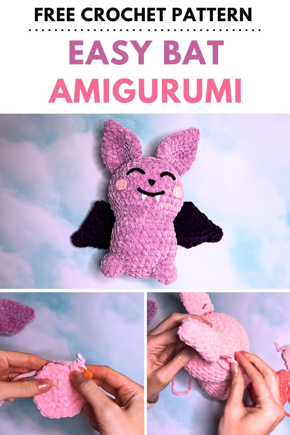 Get ready for Halloween with a cute and spooky crochet bat! This easy pattern creates a charming amigurumi bat with detailed wings and a heart-shaped nose. Follow along and learn to make adorable wings and a smiling face for your new Halloween friend. Happy crocheting!