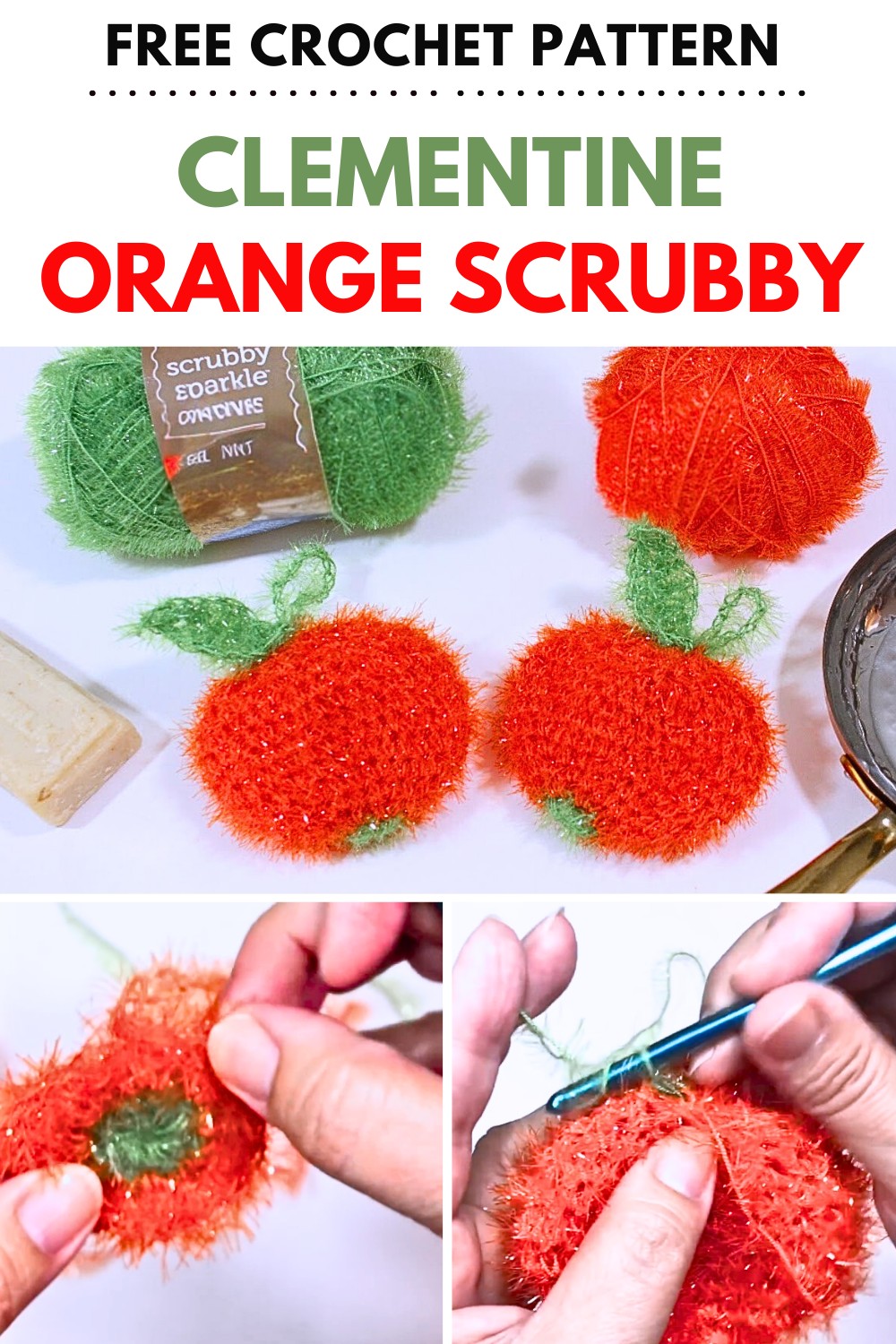 Uses: This handy scrubber measures 4 inches wide and 3 inches high, making it a great fit for your cleaning needs. You’ll need an H crochet hook and two colors of Red Heart Scrubby Sparkle Yarn, avocado and orange, to bring it to life. With a straightforward pattern, even beginners can join in. Not just cute, this citrus-themed scrubby adds a splash of color to your kitchen while doing tough cleaning jobs.