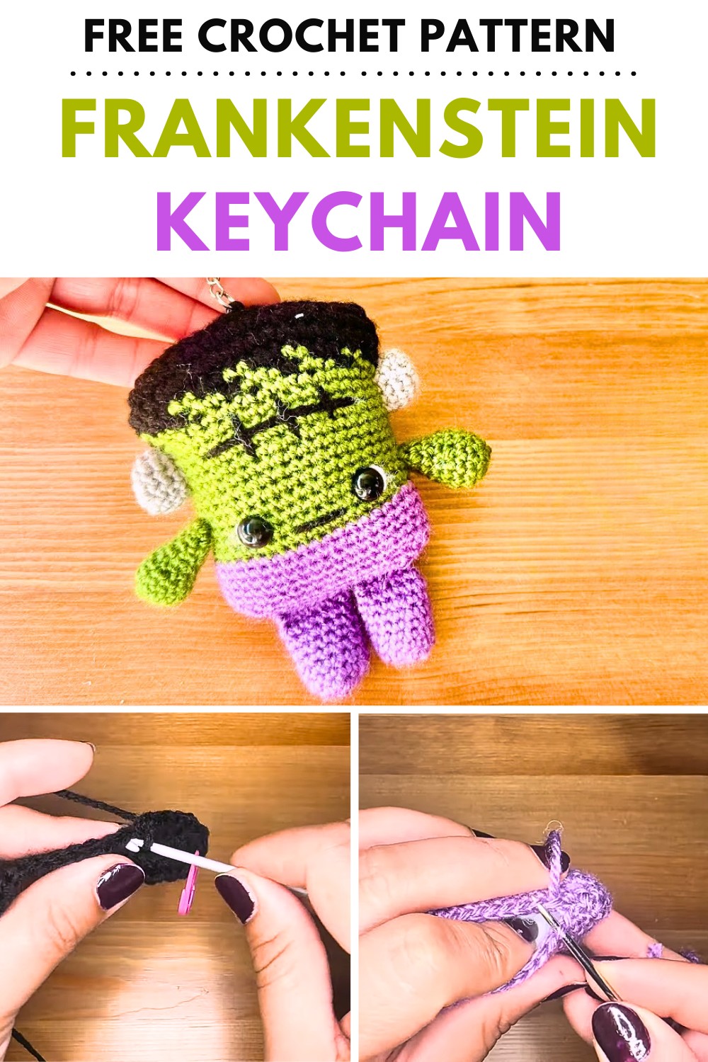 Tuck your keys under the watchful eyes of your own Crochet Frankenstein Monster Keychain. With a friendly stitched scowl, this mini Frankenstein stands at 11 cm, crafted using green, purple, gray, and black yarn. This key companion keeps things simple with a basic single crochet technique, offering both charm and a splash of color to your day. Plus, with its sturdy key ring, your keys stay secure and stylish by your side.