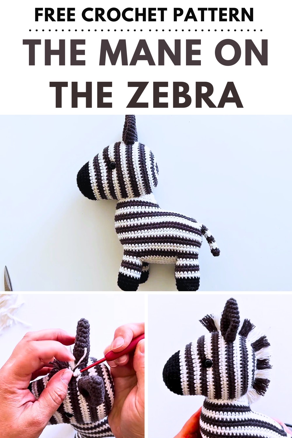 The Amigurumi Zebra from the Safari Animals collection is made using a 2mm crochet hook, resulting in a cute and firm structure. Its unique mane is crocheted with a surface slip stitch, adding charm to its look. The pattern includes detailed steps to crochet both the body and head, which are securely attached to ensure sturdiness. Perfect for any animal lover, this zebra is a fun and simple project! Free pattern is available.