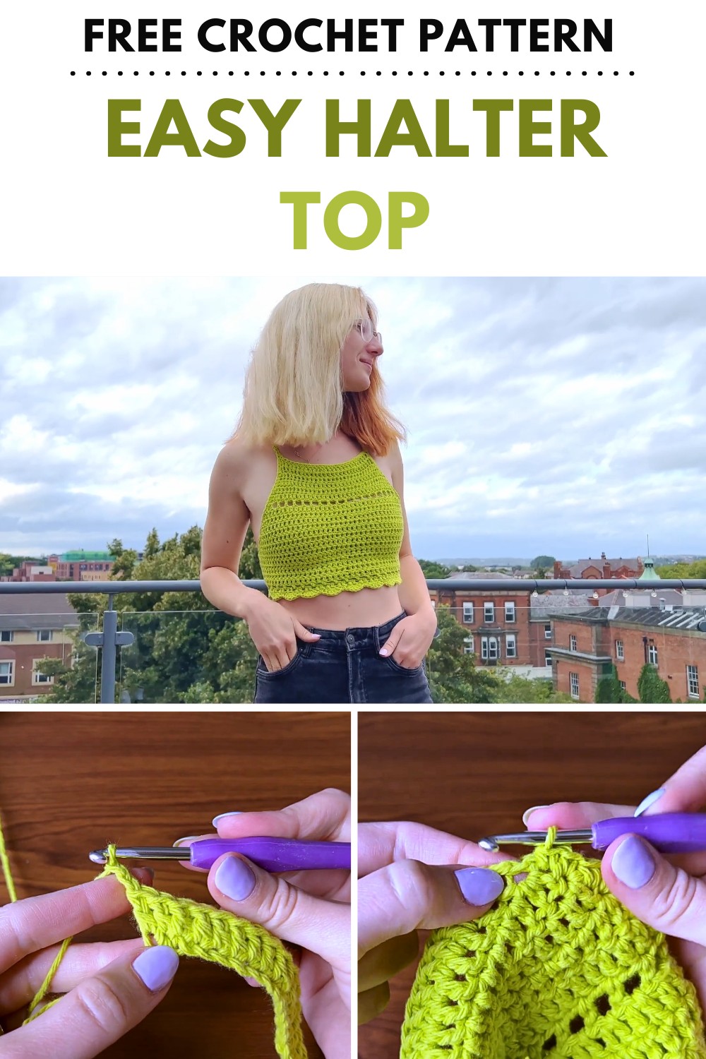 Great for beginners, this project promises a cool, handmade addition to your wardrobe. This video shows you how to create an easy crochet halter top, perfect for any size, and doable in just a day or two. It starts with a simple chain and grows with double crochet stitches, including added flair with a wavy edge! Finish it with straps for a customized fit.